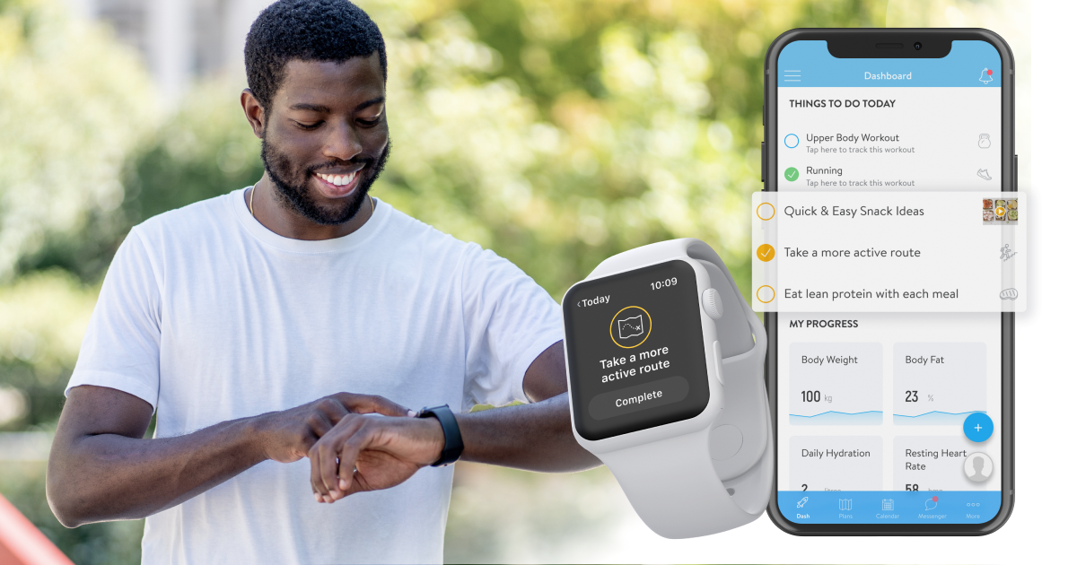 With just a couple of quick taps, clients can view the habits assigned to them for the day right on their wrists, and they check them off as they complete them throughout the day.