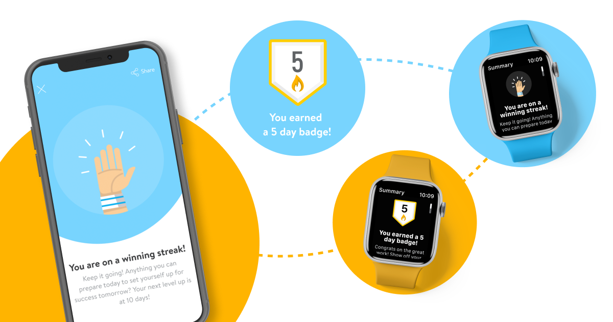 Everybody loves a good thumbs up or hi-five for doing something right! As clients complete habits each day, they will earn habit streaks and unlock special achievement badges—perfect for motivating clients to practice their habits daily!
