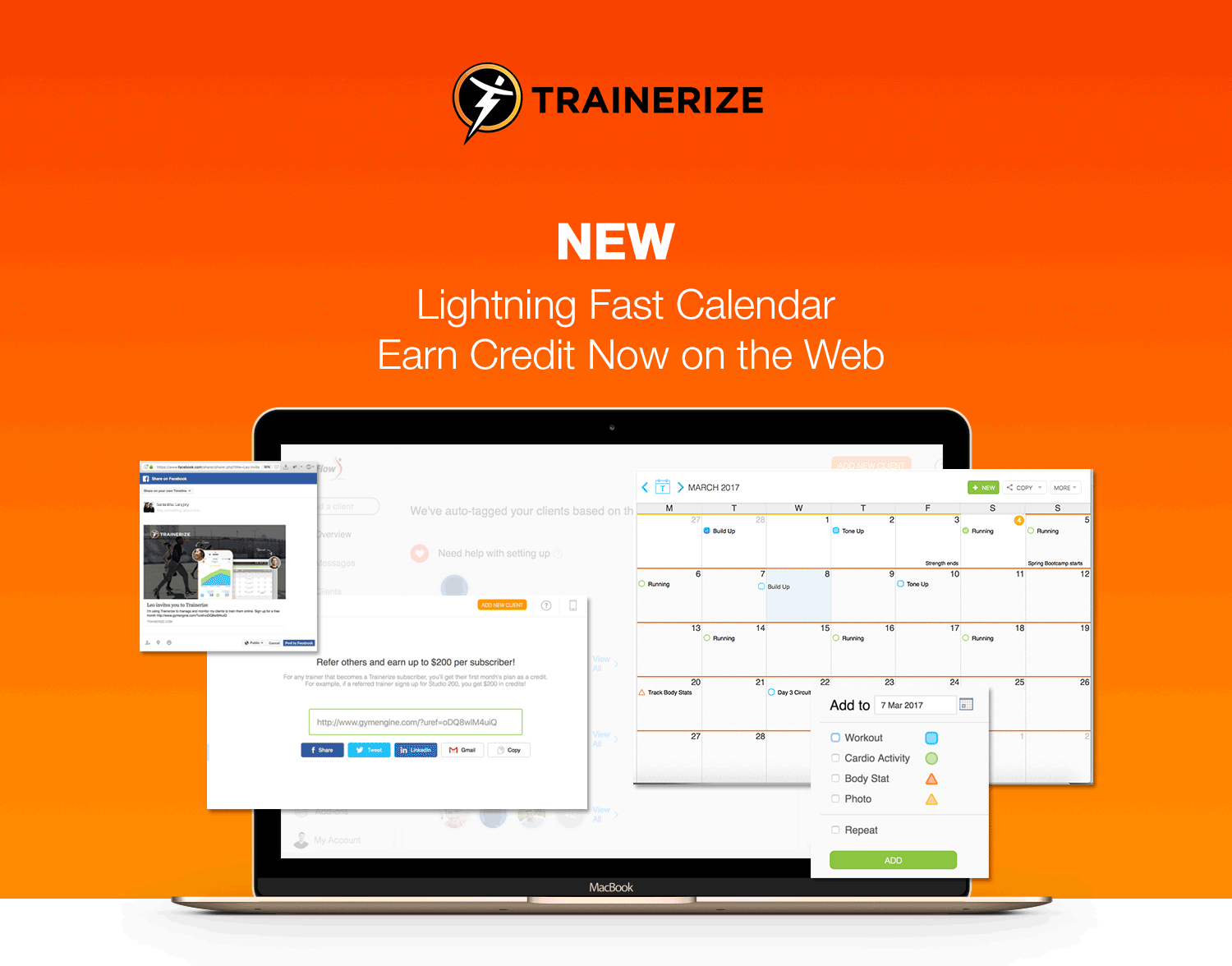 All you have to do is send a custom referral link to another trainer to register for Trainerize through Facebook, Twitter, LinkedIn, or email. If that referred trainer subscribes to a paid Trainerize plan, you will earn a credit on your Trainerize account in the amount equal to their first monthly payment. Before you know it, Trainerize will be paying for itself! More details on the Trainerize Referral Program can be found here.