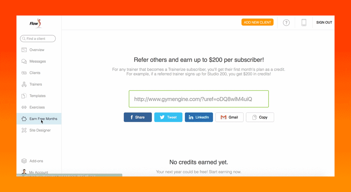 You can refer new trainers through the Trainerize web platform to earn credit on their Trainerize account. This was previously only available on the mobile app. Now when you’re getting down to work on your laptop or desktop computer, you can conveniently find your referral link under “Earn Free Months” in the sidebar.