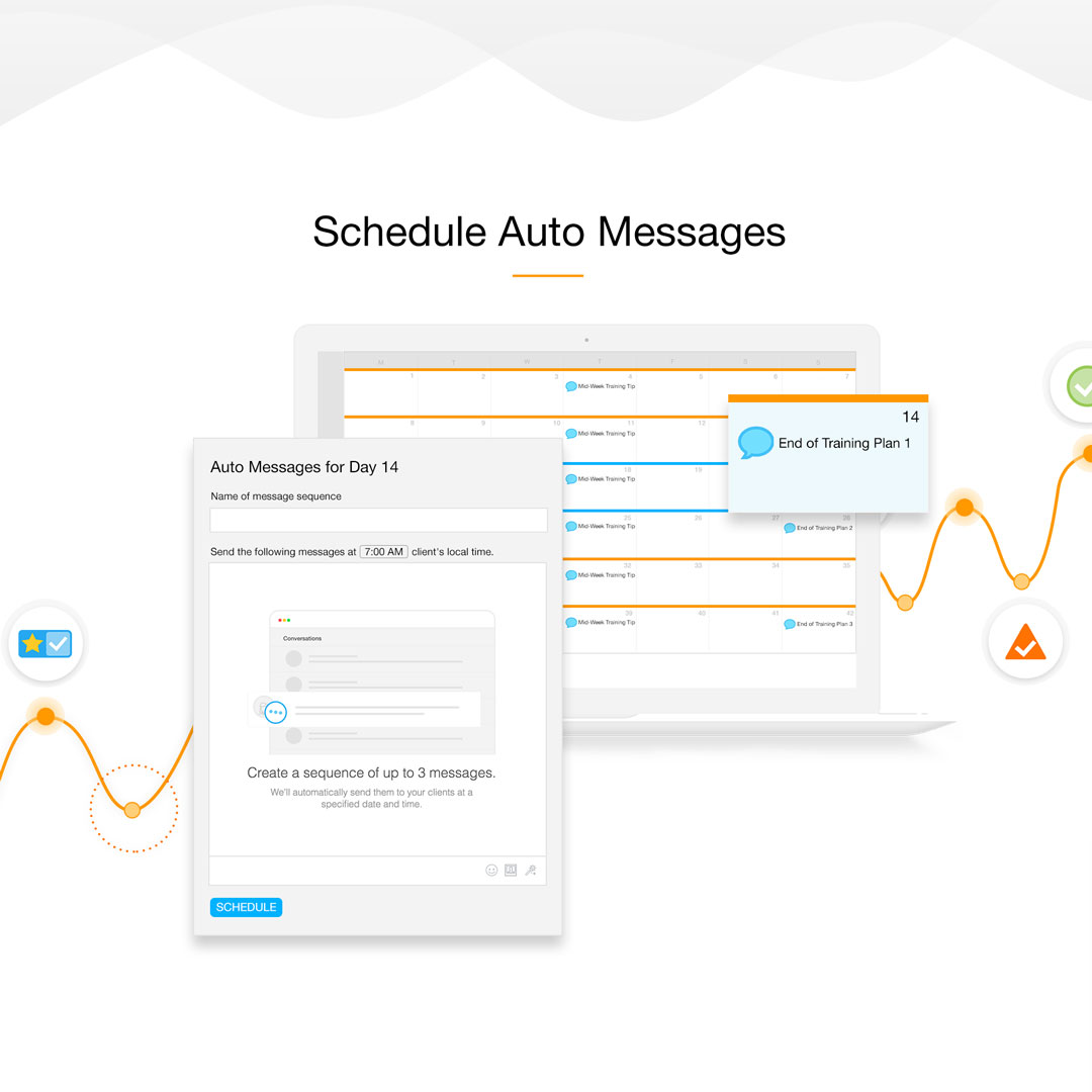 Once you’ve got your clients showing up and logging workouts, you can start to focus on strengthening their commitment to a healthy lifestyle. Schedule auto messages that follow them throughout their fitness journey, offering timely and relevant information at each stage of their training.