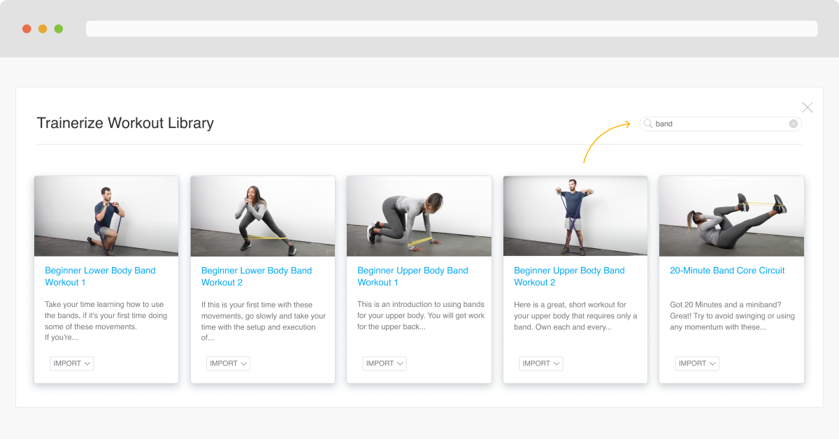 Say hello to mini band, band, and super band exercises as well as corrective exercises and mobility drills! Plus, browse the Trainerize library to quickly grab one of our pre-made workouts and programs!