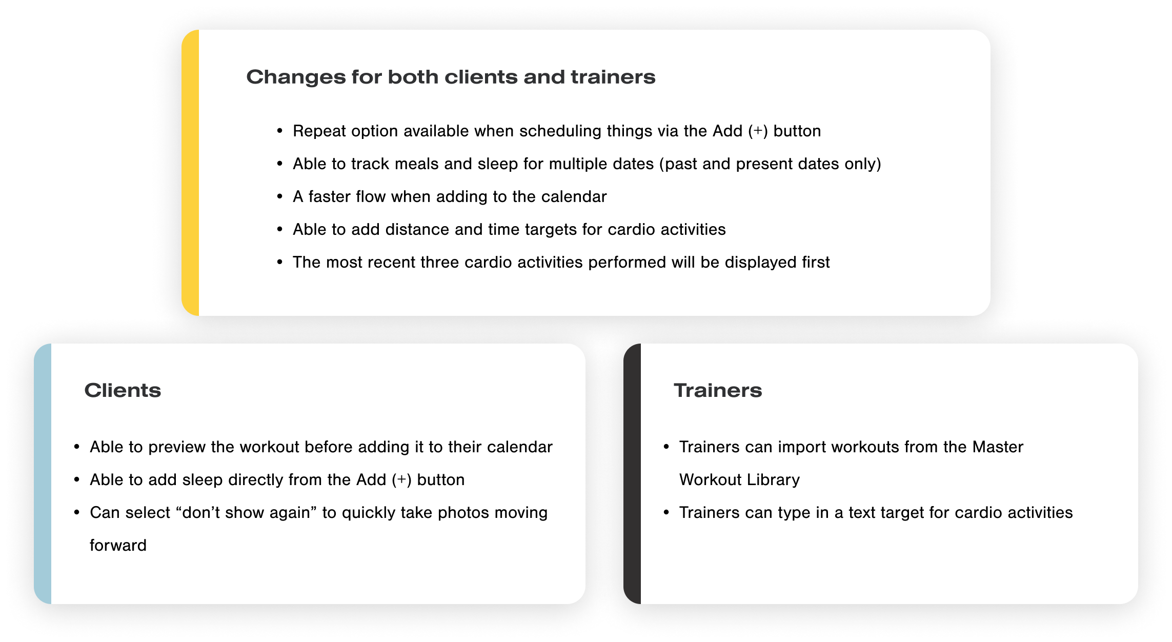Here’s a summary of what has changed for both the client and trainer end on the mobile app.