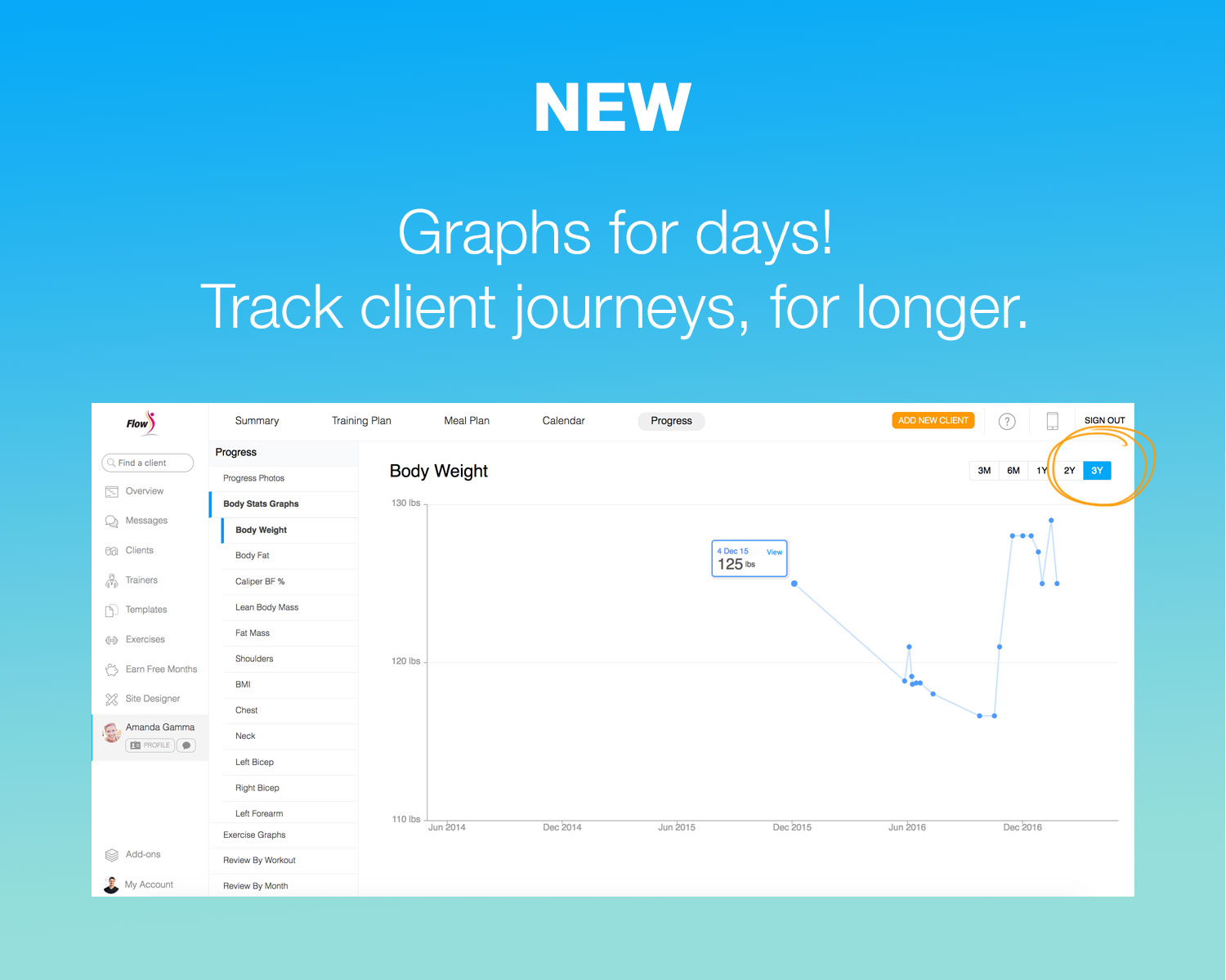 To accommodate these champion clients, we’ve updated the body stats graphs to include a 2-year and 3-year time-frame so you can view their progress over a longer period of time.