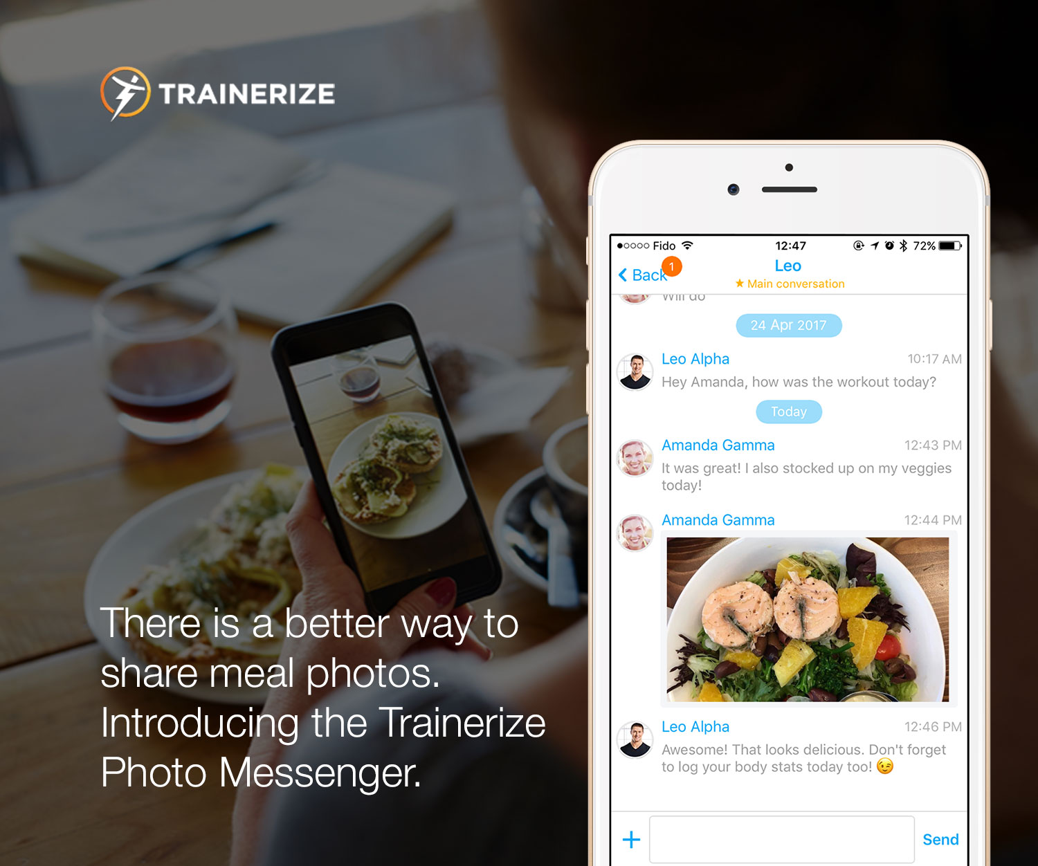 When it comes to meals, Instagram has proven that people love taking and sharing pictures of their food! Our latest update allows clients to share photos of meals with their trainers through our newly enhanced photo messenger. Trainers can also use the enhanced messenger to share exercise posture photos, or any other photos with their clients!