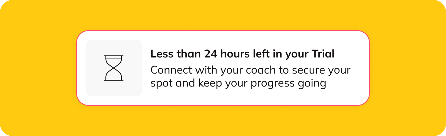 - The experience does the selling for youDuring the trial, trial clients see a banner in their app showing how many days are left, creating a natural sense of urgency and encouraging engagement.When the trial ends, the banner prompts them to connect with you and sign up for ongoing coaching.