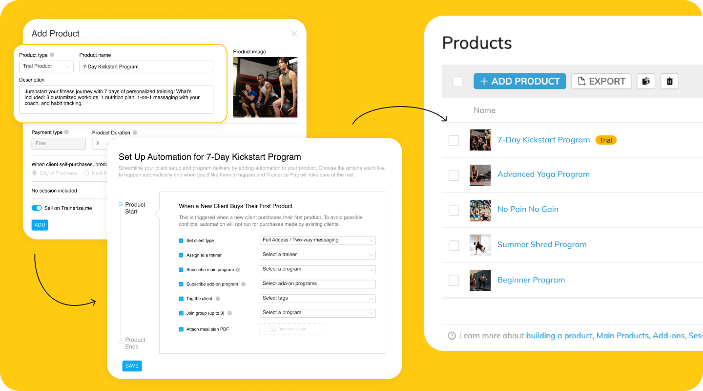 Trial Products create a seamless path from prospect to paying client, all inside ABC Trainerize, powered by the Business Add-on.